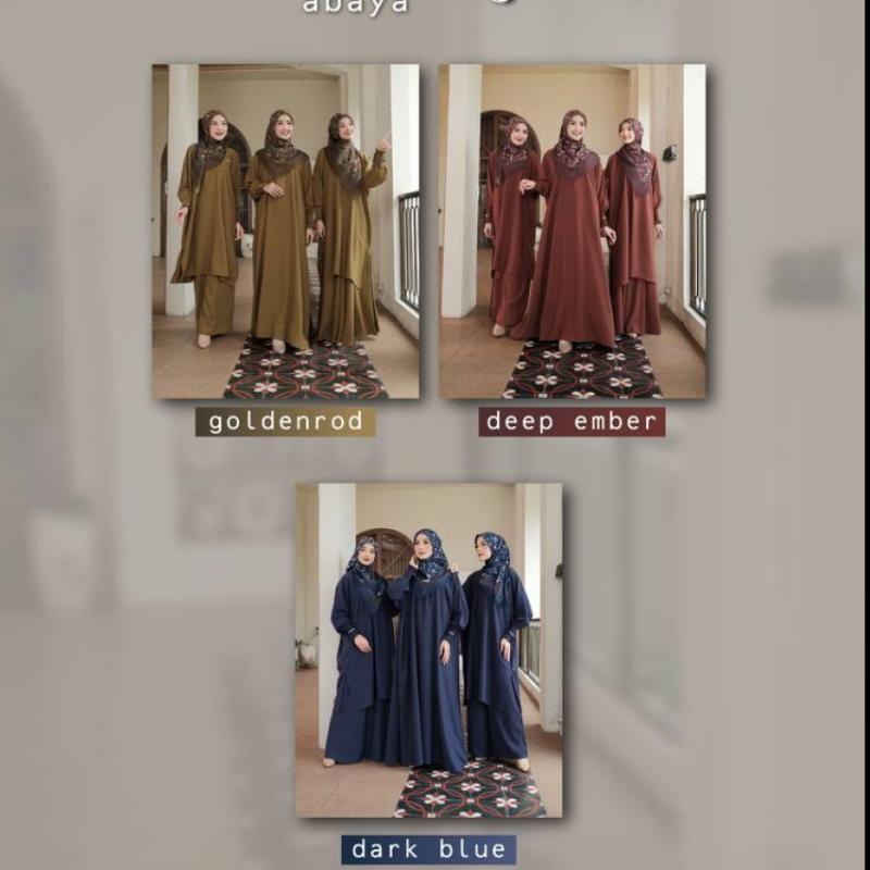 Bismillahirrohmanirrohim…. ?*KATALOG ABAYA KHADIJA by artie daily*? *Open Pre Order 1-10 APRIL 2026* Elegan itu bukan tentang berlebihan, tapi tentang kesederhanaan yang dipadu dengan kualitas. Dress abaya kami hadir dengan bahan premium, potongan flowy, dan detail yang rapi. Setelan abaya yang pas untuk segala suasana. One set rok abaya memberikan kesan feminin dan sopan, sedangkan one set celana abaya cocok untuk kamu yang aktif dan modern? ?*MATERIAL PRODUK*?: - Bahan dasar abaya ~ FORTALEZA (jenis kain berkualitas ekspor yang lembut, halus, flowy (jatuh dengan cantik), tidak mudah kusut, dan nyaman dipakai karena tidak panas, memiliki daya serap baik.) - Bahan viscose : Bahan viscose (rayon viscose) adalah serat semi-sintetis yang terbuat dari selulosa alami (pulp kayu) dengan tekstur halus, lembut, ringan, dan sejuk di kulit. Karakteristiknya yang jatuh (draping) baik dan daya serap tinggi membuatnya sangat populer untuk pakaian sehari-hari, blouse, dress, hingga pashmina, karena terasa adem. - ?Voal printing : Memiliki serat yang lembut,mudah dibentuk dan mudah menyerap keringat sehingga nyaman dipakai *?SPESIFIKASI PRODUK*? ?Detail abaya One set celana (kode 1) ?Abaya - Bahan : Fortaleza - ?Kerah : Bulat - ?Resleting depan (busui friendly) - ?Mangset karet (wudhu friendly) - ?Woven merk artie daily - ?Metaltag artie daily - Terdapat aksesoris chain di bagian tangan yang cantik ?Celana - Bahan : Fortaleza - Saku samping bagian kanan ?Detail Dress abaya (kode 2) - Bahan : Fortaleza - ?Kerah : Bulat - ?Resleting depan (busui friendly) - ?Mangset karet (wudhu friendly) - ?Woven merk artie daily - ?Metaltag artie daily - Terdapat aksesoris chain di bagian tangan yang cantik ?Detail abaya one set Rok (kode 3) ?Abaya - Bahan : Fortaleza - ?Kerah : Bulat - ?Resleting depan (busui friendly) - ?Mangset karet (wudhu friendly) - ?Woven merk artie daily - ?Metaltag artie daily - Terdapat aksesoris chain di bagian tangan yang cantik ?Rok - Bahan : Fortaleza - Saku samping bagian kanan - ?Full karet pinggang ?Detail Hijab Viscose - Bahan : Viscose - ?Metaltag Artie daily - ?all size 75 X 175 cm - ?Tepi : Jahit tepi full sekeliling pashmina - ?Mudah di styling ?Detail Hijab Scraft - Bahan : Voal printing - ?Metaltag Artie daily - ?motif bunga - ukuran 115 X 115 Cm - ?Tepi : Laser cut full persegi ?*PILIHAN WARNA :*? 1. Leather 2. ?Ash grey 3. ?Dark blue 4. ?Deep ember 5. ?Goldenrod ??PRICELIST, SIZE CHART, BERAT PRODUK, TIMELINE Dapat kalian lihat di akun kami : ?ig: artie_daily_pusat ##abaya#ootd#fashion#artiedailypusat#katalogartiedaily
