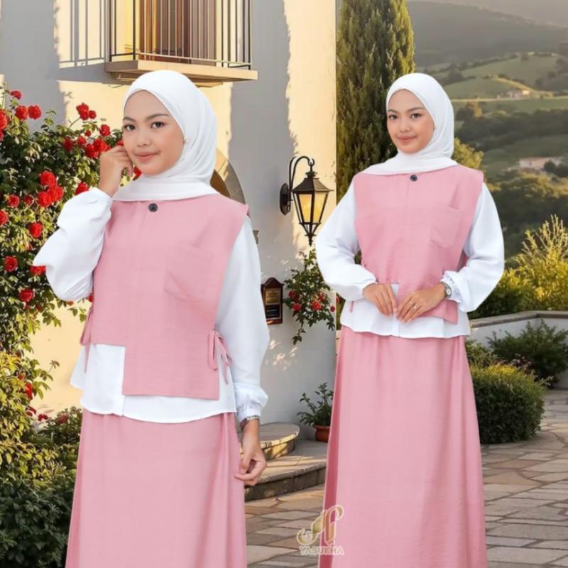 Bismillah… New Katalog Open Pre Order Seragaman Serina Oneset Rok by @yasukha.pusat Serina Oneset Rok hadir dengan sentuhan kelembutan dan kehangatan dalam setiap detail desainnya. Memancarkan gaya effortless chic yang casual tanpa terasa ribet, Oneset Rok ini dirancang simpel namun tetap berkelas. Menggunakan bahan Polo Linen Premium dan Katun Premium, Serina tidak hanya memikat dari segi tampilan, tetapi juga memberikan kenyamanan maksimal untuk dipakai sepanjang hari. Serina Oneset Rok, pilihan favorit untuk kamu yang ingin tampil chic, casual, dan tetap nyaman dalam kesederhanaan? ??Detail : ?Serina Oneset Rok ? Matt : Polo Linen Premium pada Vest dan Roknya Katun Premium pada Inner Blouse ? Menggunakan manset karet yang elastis pada inner blousenya sehingga wudhu friendly ? Desain saku pada sebelah kiri vest ? Detail tali pada sebelah kanan dan kirinya, sehingga bisa dilepas pasang ? Menggunakan kancing pada vest dan inner blousenya ? Untuk roknya menggunakan full karet pada bagian pinggang sehingga fleksibel ? Terdapat saku pada sebelah kanan roknya ?Varian Serina Oneset Rok : ? Misty Grey ? Royal Blue ? Maroon ? Dusty Pink ? Black ? Milo ? Sizechart Serina Oneset Rok : Size Vest : - Panjang Vest : 53 Size Rok : - L. Pinggang : 56-92 - Panjang Rok : 93 Size Inner Blouse : - Panjang Badan : 61 - Lebar Dada : 102 Size Pashmina : Panjang x Lebar : 180 x 70 ?? Estimasi Berat Serina Oneset Rok : 450-550 gram ?Pricelist : Oneset Rok : Rp 150.000,- Pashmina : Rp 55.000,- ?? *Lebih atau Kurang 1-3 Cm* dikarenakan Proses Produksi ?? *Kemiripan warna 90%* , Karena setiap layar HP/PC mempunyai karakteristik yang berbeda. Selain itu efek pencahayaan saat Photoshot bisa saja mempengaruhi tampilan warna pada hasil foto #onesetrok #ootdsimpel #ootdcantik #outfitkekinian #outfitsantai #outfitcasual #seragaman #outfitcouple #onesetcantik #serinaonesetrok #yasukhapusat