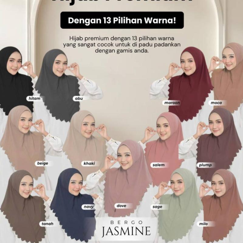 LAUNCHING TODAY BERGO AIKO ??MATERIAL : JERSEY KOREA Jilbab ini terbuat dari bahan jersey korea yang memberikan kenyamanan saat dipakai karena bahan yang lembut dan tidak mudah kusut. ??SPESIFIKASI Size : panjang depan 65cm Panjang belakang 85cm Aman memberikan perlindungan yang cukup untuk kepala dan leher serta menutupi dada dengan baik.