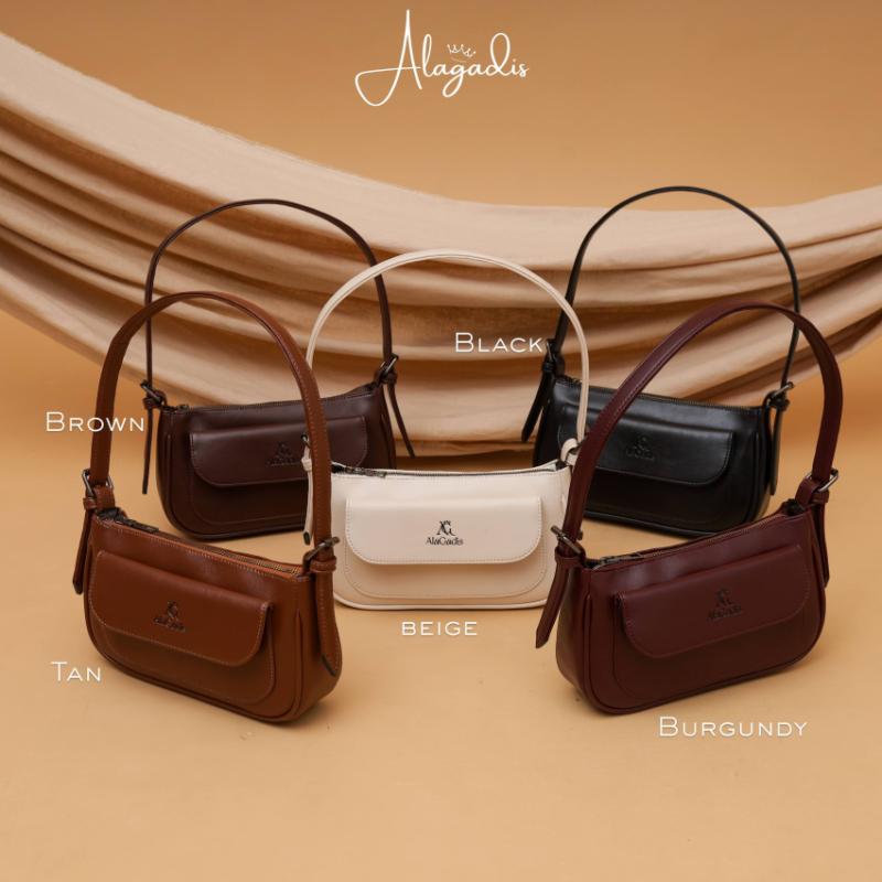 NADIN BAG BY ALAGADIS PRODUCT KNOWLEDGE; - Material: Ayumi Synthetic Leather (tekstur halus, bermotif urat, tebal 150mm, dan mewah kokoh) - ?Roomy compartment - ?pocket bagian depan(muat HP) - Handle kokoh - Gesper bagian handle - Strap panjang 75 cm - Magnet bagian penutup Bagian pocket depan - Embos alagadis - ?Black hardware - Berat: -300gr - ?Available dalam 5 warna - Include tag dan dustbag DETAIL SIZE; - Panjang: 27cm - Lebar: 8cm - Tinggi: 16cm #nadin #alagadis #nadinbyalagadis
