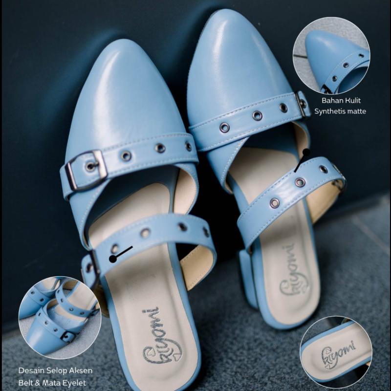 NEYNA SHOES BATCH 2 Sendal dengan desain simple Stylish, Nyaman, Modern dan Premium Look, yang akan membuat tampilan mu makin sempurna. Detail strap dan eyelet ring black nikel memberikan sentuhan classic anggun kekinian. • Karakteristik Material Upper: Synthetic Leather Outsole: PPC Non Slip – ringan, kokoh, dan aman di segala aktivitas Insole: Bantalan empuk – memberikan kenyamanan ekstra setiap dipakai • Detail ? Pilihan Hak 3 dan 5 cm, stabil dan nyaman digunakan seharian ? Desain slip on praktis, mudah dilepas-pakai ? Logo KIYOMI bagian dalam sepatu ? Cocok untuk kerja, kuliah, hangout dan Lebaran • Pilihan Warna • Gray • Black • Cream • Mocca • Baby Blue ? Size Chart Insole: 37 ? 24 cm 38 ? 24,5 cm 39 ? 25 cm 40 ? 25,5 cm 41 ? 26 cm